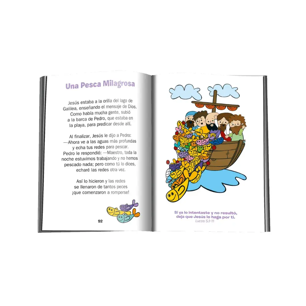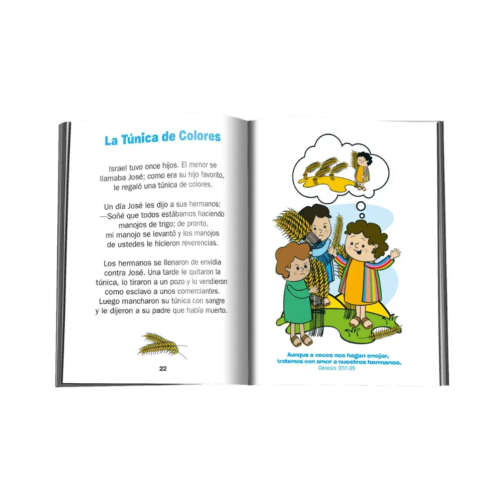 Contiene 79 fascinantes historias ilustradas de la Biblia, en un lenguaje fácil de entender. Cada historia contiene una ilustración a todo color y una aplicación a la vida del niño. En las últimas páginas incluye un mapa a todo color con las escenas bíblicas ubicadas en el lugar donde sucedieron. Para que los niños puedan descubrir todo lo que Dios quiere enseñarles y se animen a crecer en su vida cristiana. ¡En color celeste!