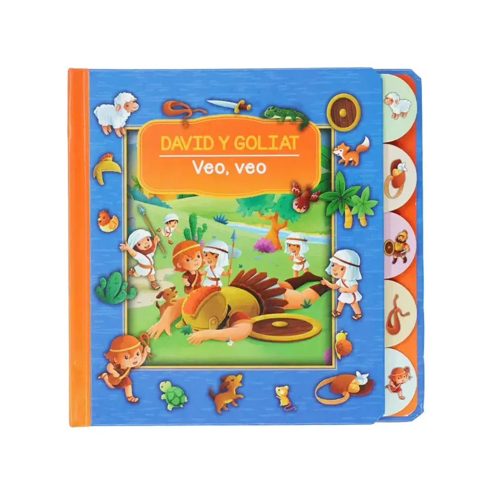 En este libro, os lectores acompañan a David en su lucha contra el gigante Goliat, ayudándole a buscar los objetos escondidos en las ilustraciones. Las pestañas con dibujos facilitan que los niños puedan pasar de una página a otra.
